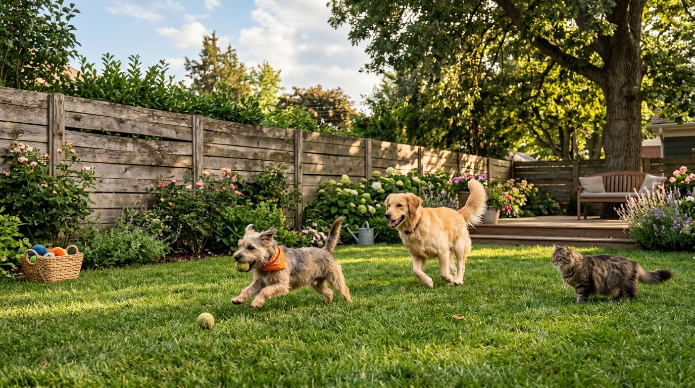 - 4-by-4-by-4.5-foot footprint stakes into a lawn corner, fits a 60-pound retriever